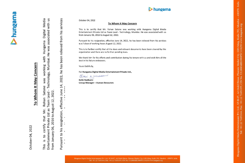 Joined as trainee, promoted to web developer, worked as project manager and finally left hungama when I was Team Lead, Technology .